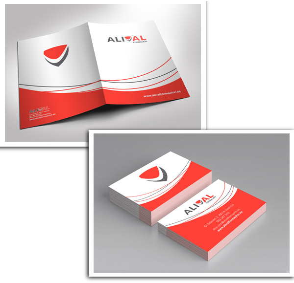 Carpetas y tarjetas diseñadas por Questión de Imagen e impresas por Cícero Artes Gráficas para Alival Formación
