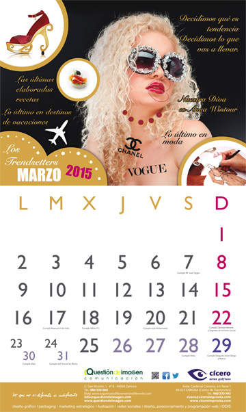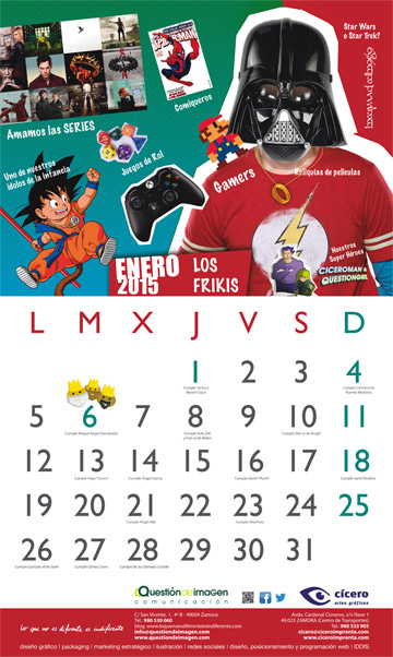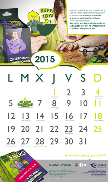 Calendarios de 2015 de Questión de Imagen y Cícero Artes Gráricas