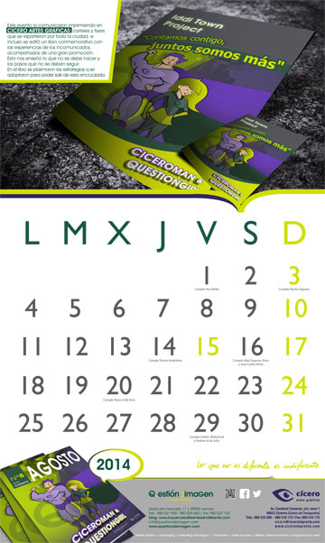 Hoja de Agosto del calendario de 2014 de Questión de Imagen y Cícero Artes Gráficas.