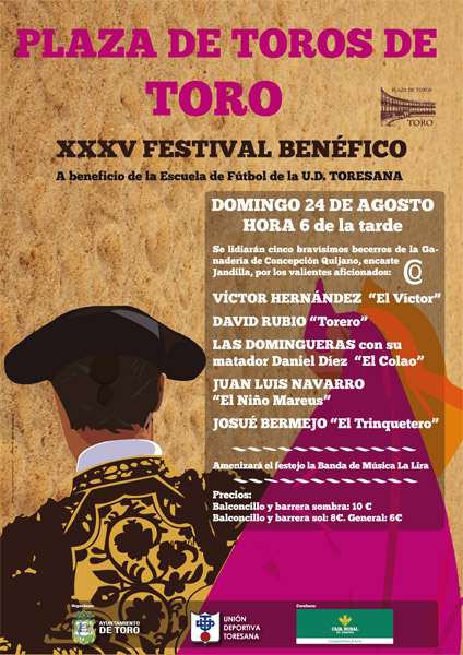 El próximo domingo 24 de Agosto a las 18:00 h. tendrá lugar en la Plaza de Toros de Toro el XXXV Festival benéfico a beneficio de la Escuela de Fútbol de la U.D. Toresana.