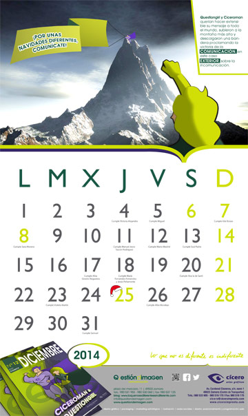 Hoja de Diciembre del calendario de 2014 de Questión de Imagen y Cícero Artes Gráficas.