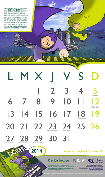 Hoja de Octubre del calendario de 2014 de Questión de Imagen y Cícero Artes Gráficas.