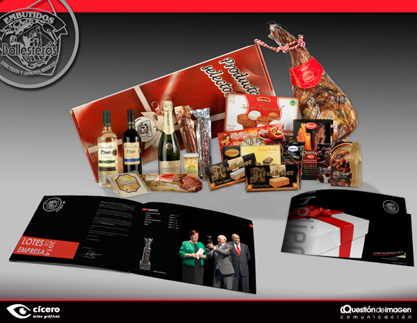 Catálogo de Lotes de Empresa de 2014 de Embutidos Ballesteros diseñado por Qdi e impreso por Cícero Artes Gráficas junto con el lote recomendado