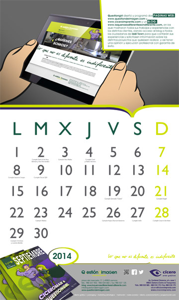 Hoja de Septiembre del calendario de 2014 de Questión de Imagen y Cícero Artes Gráficas.