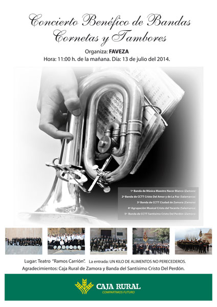 Concierto Benéfico de Bandas Cornetas y Tambores organizado por FAVEZA, a las 11:00 h. de la mañana en el Teatro Ramos Carrión de Zamora.