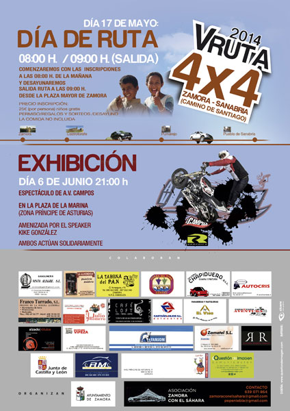 Cartel diseñado por Qdi e impreso por Cícero Artes Gráficas para la V Ruta 4 x 4 2014 Zamora - Sanabria y la Exhibición Espectáculo de A.V. Campus