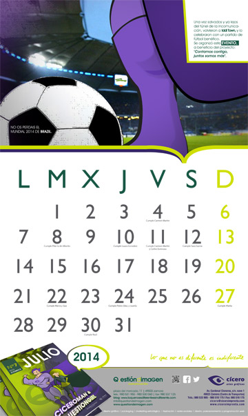 Hoja de Julio del calendario de 2014 de Questión de Imagen y Cícero Artes Gráficas.