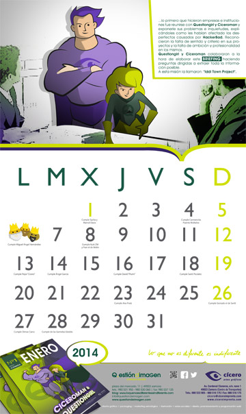 Hoja de enero de 2014 del calendario de Questión de Imagen y Cícero Artes Gráficas.