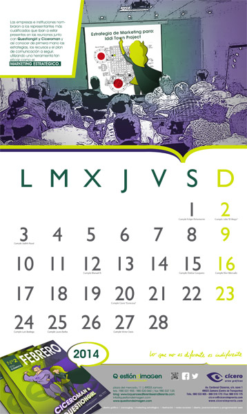 Hoja de febrero de 2014 del calendario de Questión de Imagen y Cícero Artes Gráficas.