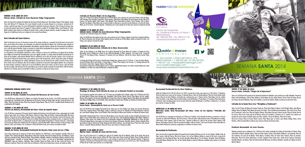 Itinerario diseñado por Questión de Imagen e impreso por Cícero Artes Gráficas para la Semana Santa de Zamora de 2014