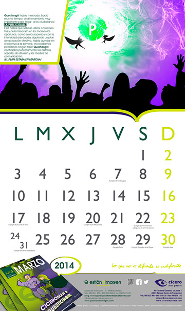 Portada del super-calendario de 2014, diseñado por Questión de Imagen e impreso por Cícero Artes Gráficas.