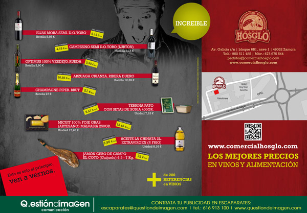 Imagen del escaparate que promociona la apertura de Comercial Hosglo