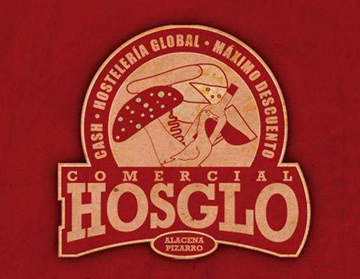 Os presentamos el nuevo logotipo de Comercial Hosglo creado por Questión de Imagen manteniendo los iconos de la empresa matriz "La Alacena de Pizarro" (imágenes de queso, vino, alimentación,...).