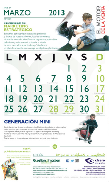 Hoja de Marzo de 2013 del calendario de QdI y Cícero