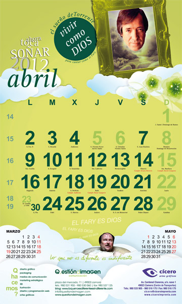 Hoja de Abril del calendario de 2012 de Questión de Imagen