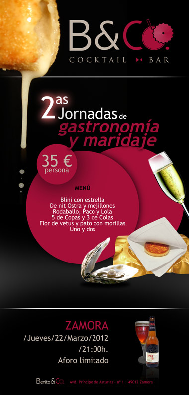 El Jueves 22 de Marzo de 2012 tendrán lugar las Segundas Jornadas de Gastronomía y Maridaje en Benito&Co, en Zamora.