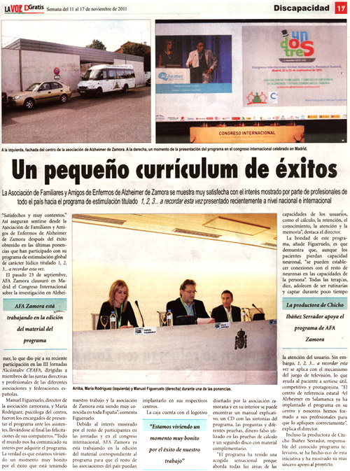 Portada del número 284 de "La Voz DGratis", donde se destaca el éxito del programa de estimulación "1,2,3... a recordar esta vez"