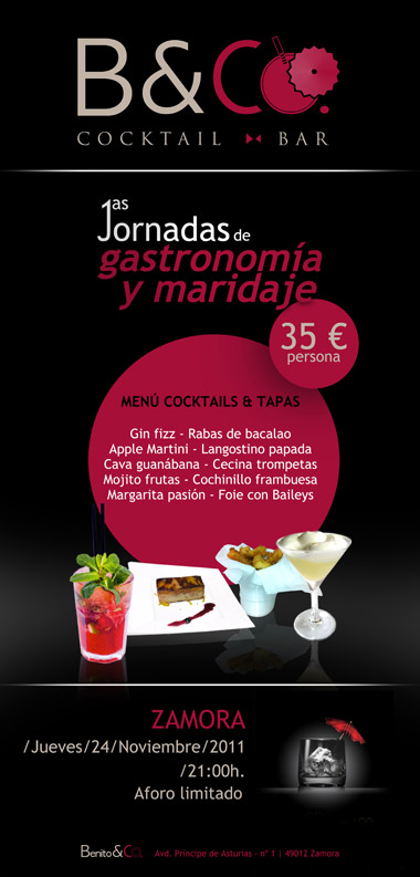El Jueves 24 de Noviembre de 2011 tendrán lugar las Primeras Jornadas de Gastronomía y Maridaje en Benito&Co, en Zamora.