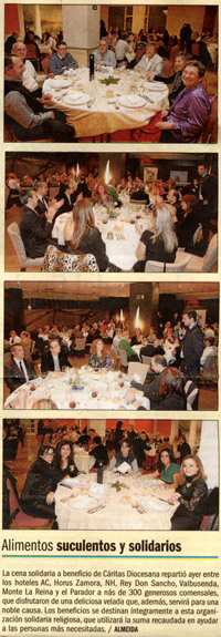 En estos momentos ya han sido reservadas más del 50% de las plazas disponibles para la Cena Solidaria a favor de Cáritas que tendrá lugar el próximo día 11 de Noviembre de 2011 en 7 hoteles de la capital zamorana.