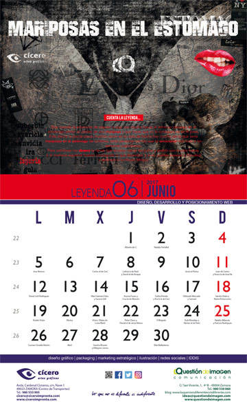 Hoja de Junio del calendario de 2017 de Questión de Imagen Comunicación y Cícero Artes Gráficas.