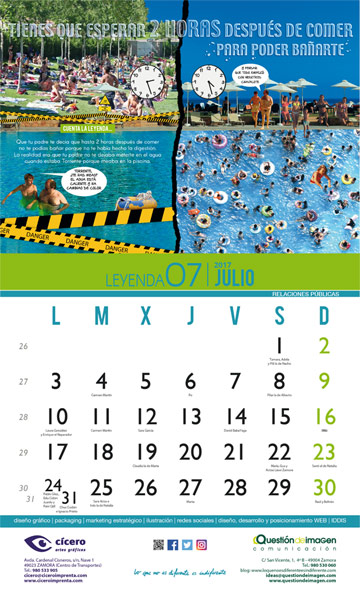 Hoja de Julio del calendario de 2017 de Questión de Imagen Comunicación y Cícero Artes Gráficas.