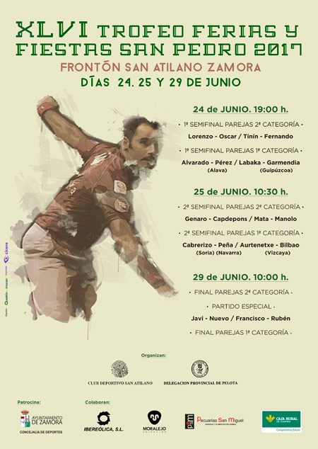 Los días 24, 25 y 29 de junio se celebrará en Zamora una nueva edición del tradicional Trofeo de Pelota de las Ferias y Fiestas de San Pedro que este año alcanza su 46ª edición.