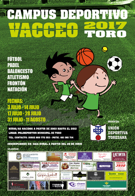 Ya está abierto el plazo de inscripción para una nueva edición del Campus Deportivo Vacceo que tendrá lugar en la ciudad de Toro del 3 de julio al 11 de agosto de 2017 en 3 turnos y del que, en Questión de Imagen Comunicación, somos colaboradores.