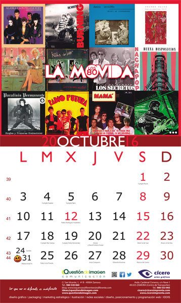 Hoja de Octubre del calendario de 2016 de Questión de Imagen Comunicación y Cícero Artes Gráficas