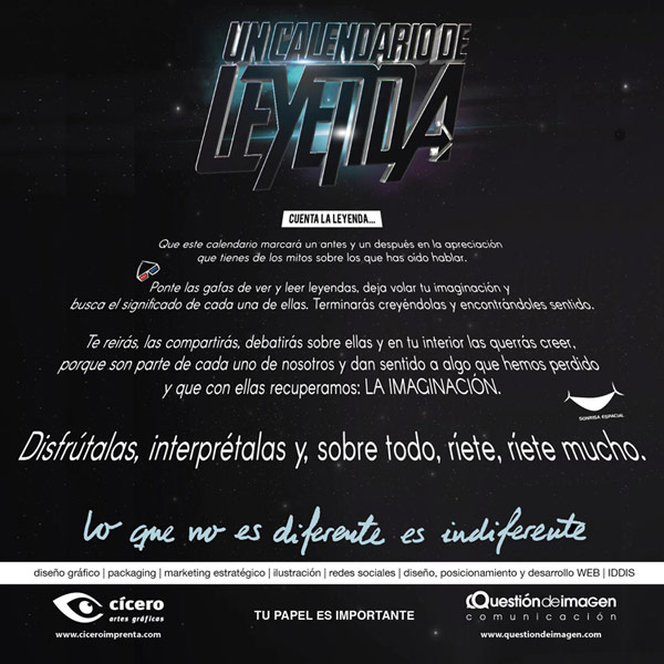 Portada del calendario de 2017 de Questión de Imagen y Cícero Artes Gráficas