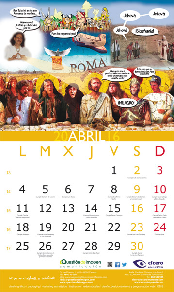 Hoja del mes de abril del calendario de 2016 de Questión de Imagen Comunicación y Cícero Artes Gráficas