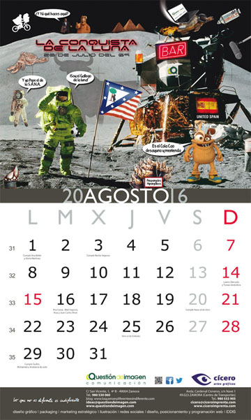 Hoja de Agosto del calendario de 2016 de Questión de Imagen Comunicación y Cícero Artes Gráficas