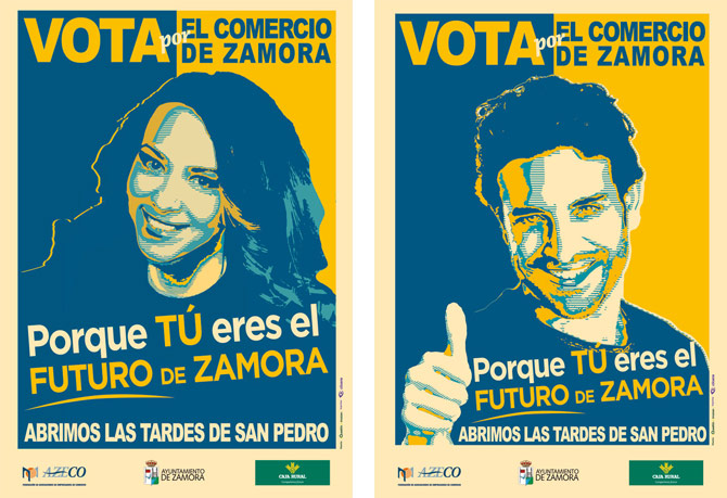 Carteles diseñados por Questión de Imagen Comunicación e impresos por Cícero Artes Gráficas para la campaña "VOTA POR EL COMERCIO DE ZAMORA. Porque TÚ eres el FUTURO de ZAMORA"