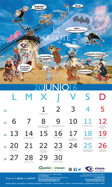 Hoja de Junio del calendario de 2016 de Questión de Imagen Comunicación y Cícero Artes Gráficas