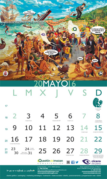 Hoja del mes de mayo del calendario de 2016 de Questión de Imagen Comunicación y Cícero Artes Gráficas