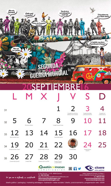 Hoja de Septiembre del calendario de 2016 de Questión de Imagen Comunicación y Cícero Artes Gráficas