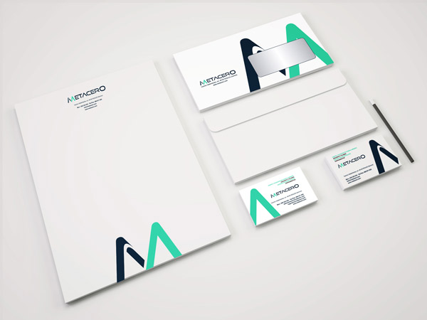 Papelería corporativa de Metacero diseñada por Questión de Imagen Comunicación e impresa por Cícero Artes Gráficas