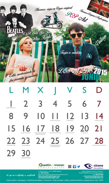 Hoja de Junio de 2015 del calendario de Questión de Imagen y Cícero Artes Gráficas