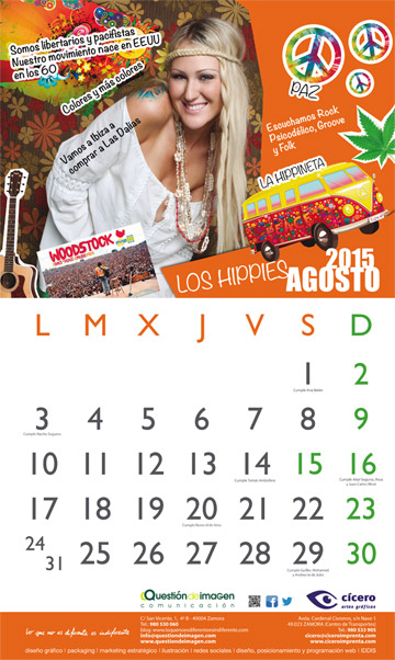 Hoja de Agosto del calendario de 2015 de Questión de Imagen Comunicación y Cícero Artes Gráficas.
