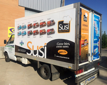 Lateral derecho de "La Caja de las Delicias" de Casquería Susi, diseñado por Questión de Imagen y rotulado por Cícero Artes Gráficas.