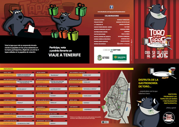 Folleto con los participantes y toda la información sobre la edición de 2015 de la Feria de la Tapa de Toro diseñado por Questión de Imagen Comunicación e impreso por Cícero Artes Gráficas