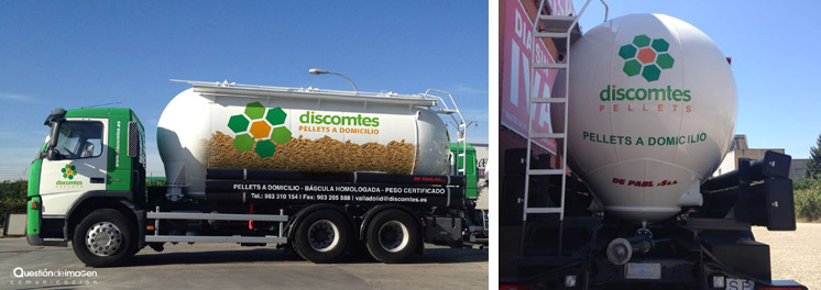 Nueva rotulación de las cisternas y camiones de pellets de Discomtes