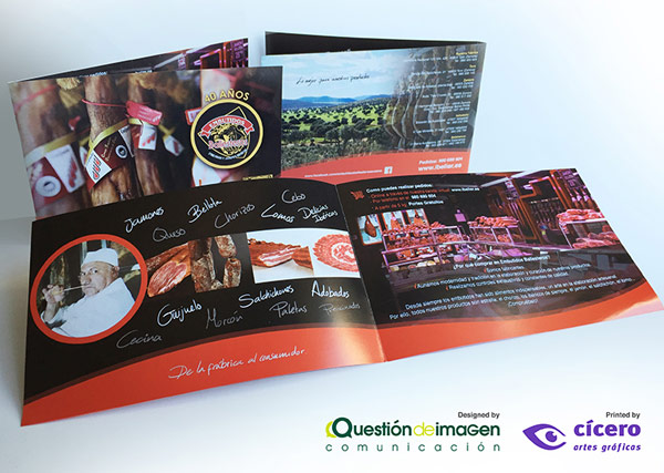 Desplegable diseñado por Questión de Imagen e impreso por Cícero Artes Gráficas para celebrar los 40 años de Embutidos Ballesteros. ¡¡Deseamos que cumplan muchos más!!